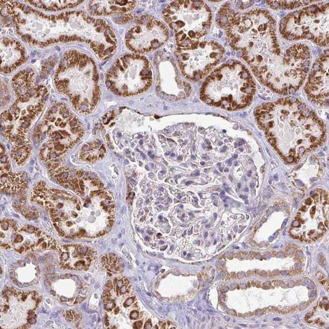 - Immunohistochemical staining of FAHD1 in human kidney using FAHD1 Polyclonal Antibody (Product # PA5-65362) shows high expression.