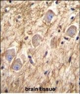 - Immunohistochemistry analysis of PCDHGA8 in formalin fixed and paraffin embedded human brain tissue. Samples were incubated with PCDHGA8 polyclonal antibody (Product # PA5-35090) followed by peroxidase conjugation of the secondary antibody and DAB staining. This data demonstrates the use of this antibody for immunohistochemistry. Clinical relevance has not been evaluated.