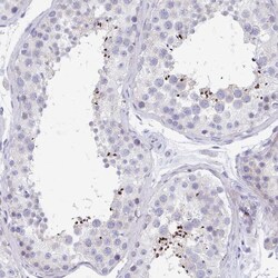 - Immunohistochemical analysis of MROH2B in human testis using MROH2B Polyclonal Antibody (Product # PA5-63729) shows moderate cytoplasmic positivity in spermatozoa.