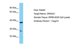 - Host: RabbitTarget Name: OR5AU1Sample Tissue: RPMI-8226 Whole Cell lysatesAntibody Dilution: 1.0µg/ml