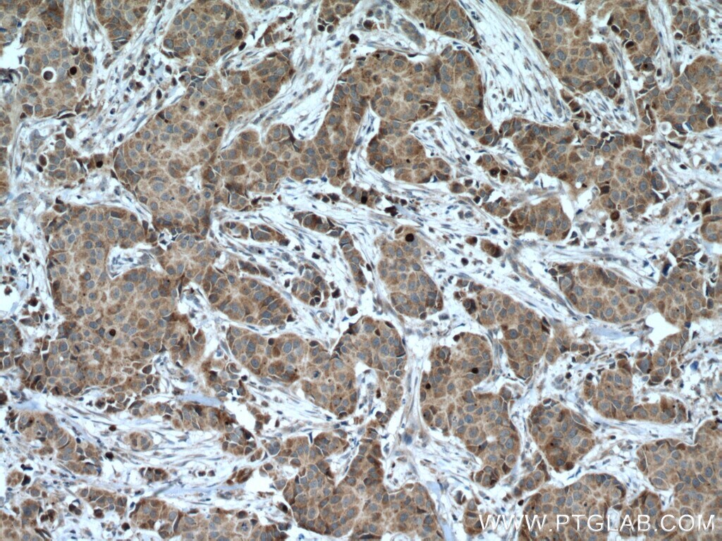 - Immunohistochemistry of paraffin-embedded human breast cancer tissue slide using 28152-1-AP (CCDC71 antibody) at dilution of 1:200 (under 40x lens) heat mediated antigen retrieved with Tris-EDTA buffer (pH 9).