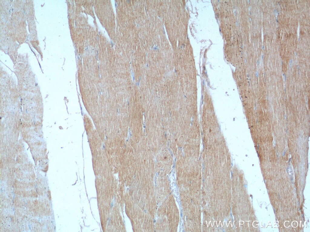 - Immunohistochemistry of paraffin-embedded human heart tissue slide using 55333-1-AP ( SEPN1 Antibody) at dilution of 1:50 (under 10x lens).