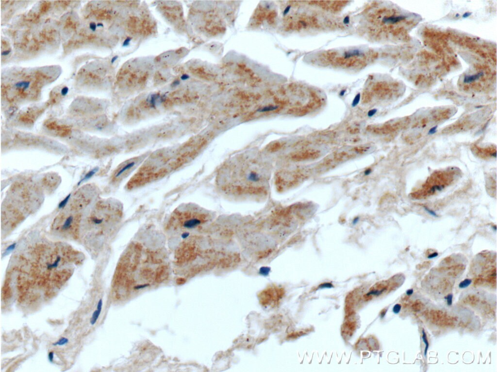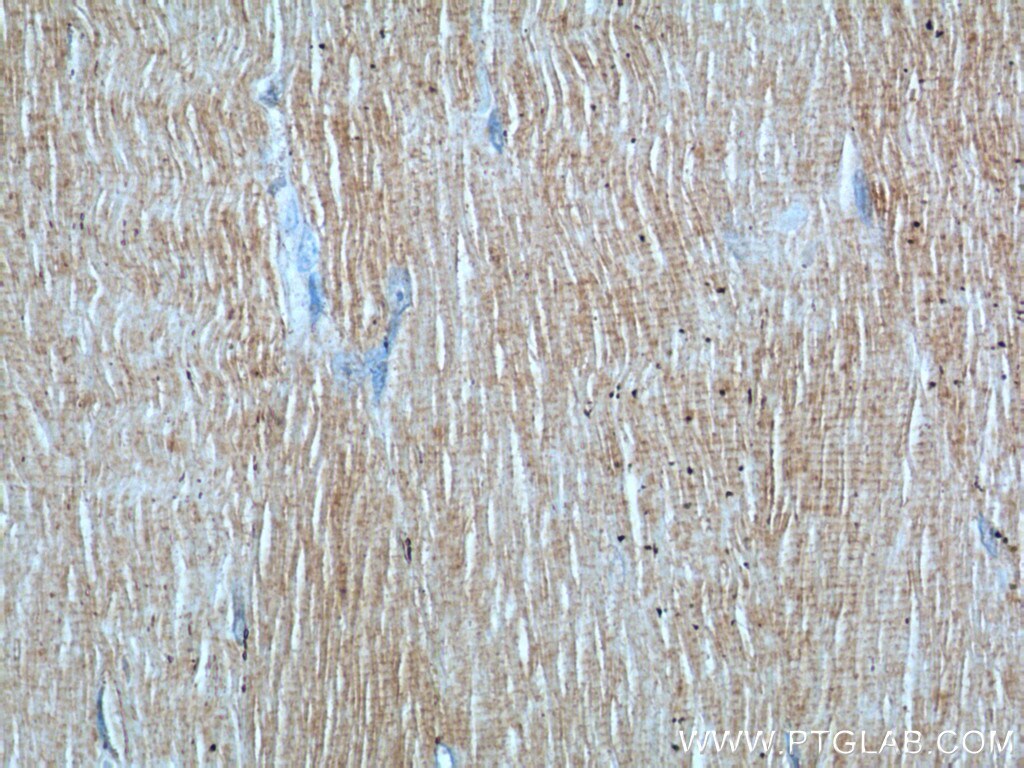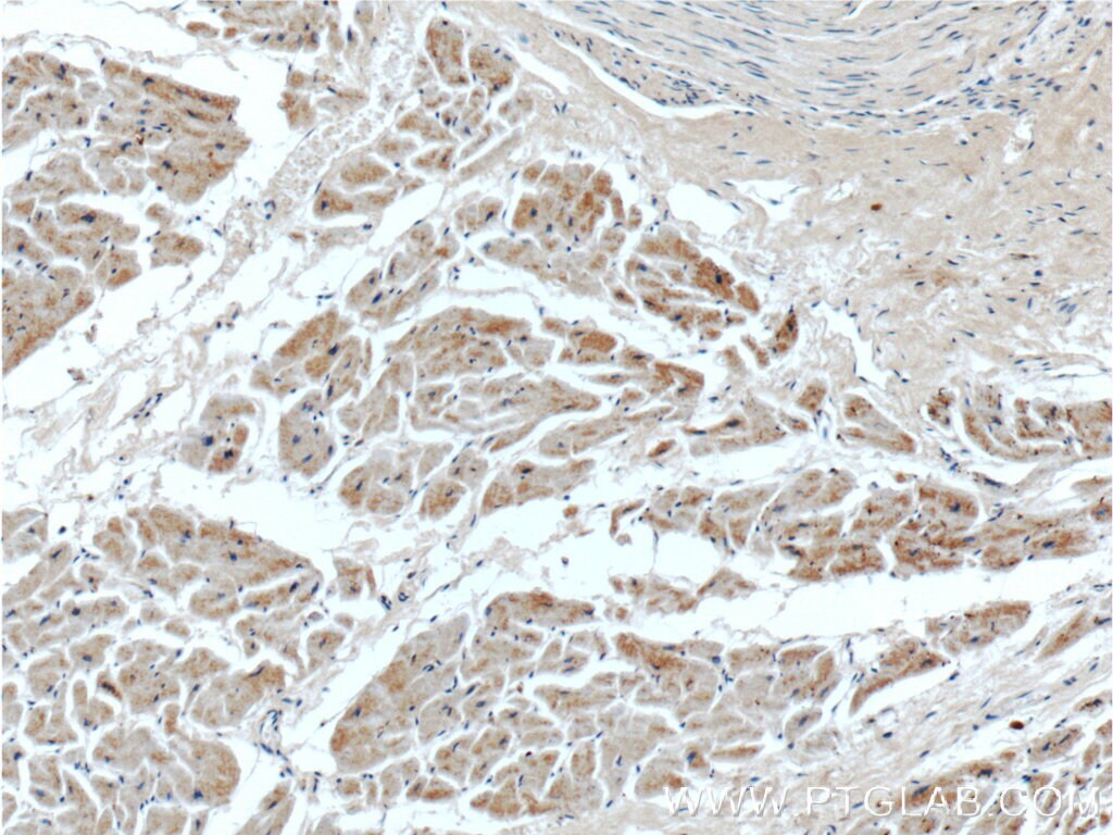 - Immunohistochemistry of paraffin-embedded human heart tissue slide using 55333-1-AP ( SEPN1 Antibody) at dilution of 1:50 (under 40x lens).