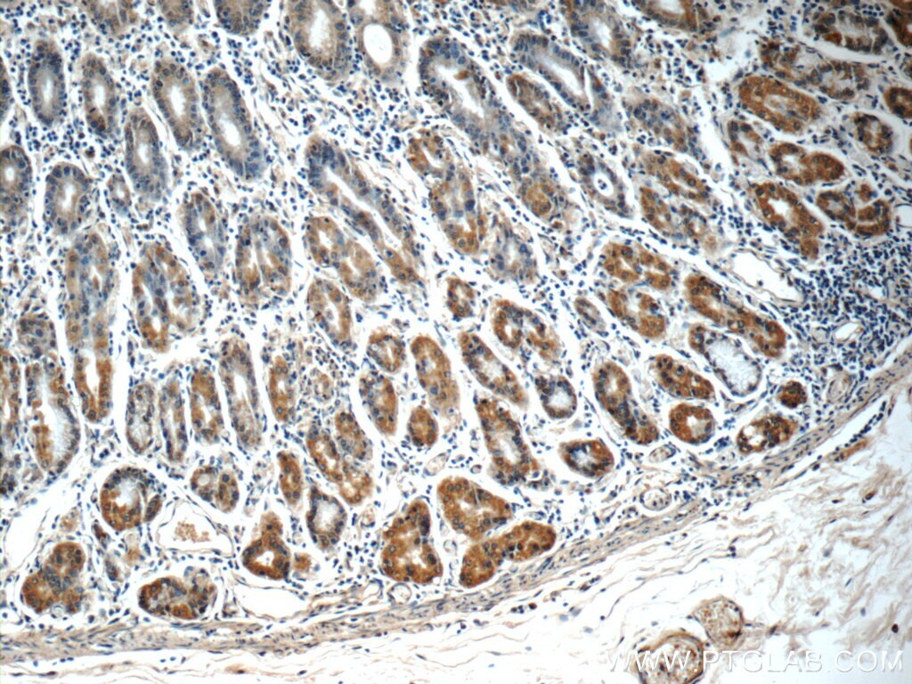 - Immunohistochemistry of paraffin-embedded human stomach tissue slide using 55333-1-AP ( SEPN1 Antibody) at dilution of 1:50 (under 10x lens).
