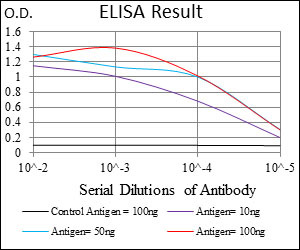 - Red: Control Antigen (100ng); Purple: Antigen (10ng); Green: Antigen (50ng); Blue: Antigen (100ng);