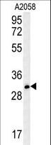 - TRI73 Antibody western blot of A2058 cell line lysates (35 ug/lane). The TRI73 antibody detected the TRI73 protein (arrow).