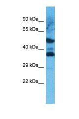 - Western blot of Human HepG2. OR8D4 antibody dilution 1.0 ug/ml. This image was taken for the unconjugated form of this product. Other forms have not been tested.