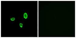 - Immunofluorescent analysis of OR10G7 in A549 cells using an OR10G7 polyclonal antibody (Product # PA5-39771).