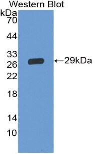 - Western blot analysis of CD42d in recombinant human GP5. Sample was incubated with polyclonal antibody (Product # PA5-119035).