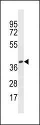 - OR4X1 Antibody (N-term) (Cat. #AP18576a) western blot analysis in HepG2 cell line lysates (35ug/lane).This demonstrates the OR4X1 antibody detected the OR4X1 protein (arrow).