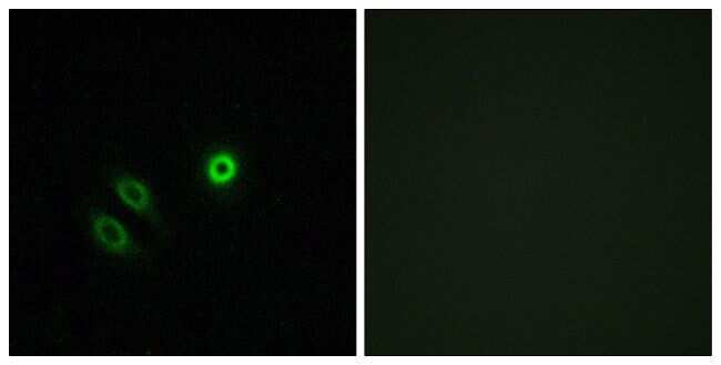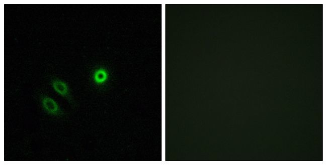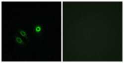 - Immunofluorescent analysis of OR4X1 in A549 cells using an OR4X1 polyclonal antibody (Product # PA5-39641).