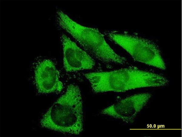 - Immunofluorescence of purified MaxPab antibody to NACAL on HepG2 cell. [antibody concentration 10 ug/ml]