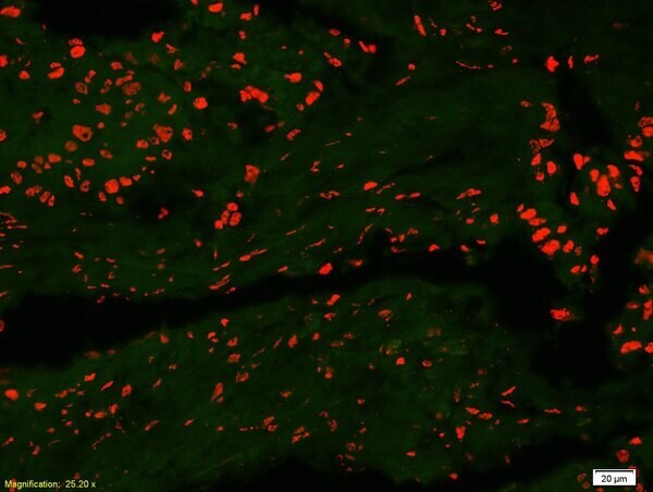 - Formalin-fixed and paraffin-embedded human colon carcinoma labeled with Anti-DATF1/IDO1 Polyclonal Antibody, Unconjugated(bs-7659R) 1:200, overnight at 4°C, The secondary antibody was Goat Anti-Rabbit IgG, Cy3 conjugated(bs-0295G-Cy3)used at 1:200 dilution for 40 minutes at 37°C.