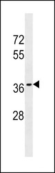 - OR10T2 Antibody (C-term) (Cat. #AP18928b) western blot analysis in T47D cell line lysates (35ug/lane).This demonstrates the OR10T2 antibody detected the OR10T2 protein (arrow).