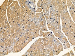 - Immunohistochemistry analysis of OR10T2 in mouse heart tissue. The sample was formaldehyde fixed and a heat mediated antigen retrieval step in citrate buffer was performed. Samples were incubated with OR10T2 polyclonal antibody (Product # PA5-102157) using a dilution of 1:100 (4°C overnight) followed by HRP conjugated anti-Rabbit secondary antibody.
