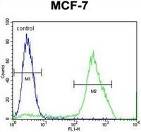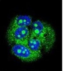 - Confocal immunofluorescent analysis of MBD3L3 Antibody (C-term) Cat.-No AP52620PU-N with MCF-7 cell followed by Alexa Fluor 488-conjugated goat anti-rabbit lgG (green). DAPI was used to stain the cell nuclear (blue).