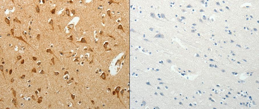 - Predicted cell location: Cytoplasm. Positive control: Human brain and thyroid cancer tissue . Recommended dilution: 1/25-100 The image on the left is immunohistochemistry of paraffin-embedded human brain tissue using SELM antibody at dilution 1/25, on the right is treated with the fusion protein. (Original magnification:x 200)
