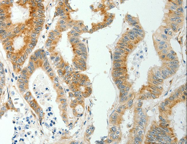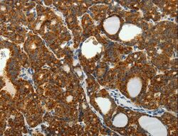 - Immunohistochemistry of paraffin-embedded Human thyroid cancer using SELM Polyclonal Antibody at dilution of 1:50.