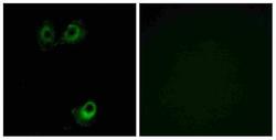 - Western blot analysis of lysates from LOVO cells, using OR11L1 Antibody. The lane on the right is blocked with the synthesized peptide.