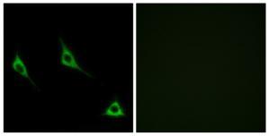 - Immunofluorescence analysis of LOVO cells, using OR51A7 antibody.The picture on the right is treated with the synthesized peptide.