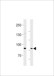 - SEMA6B Antibody western blot of U87-MG cell line and rat brain lysates (35 ug/lane). The SEMA6B antibody detected the SEMA6B protein (arrow).