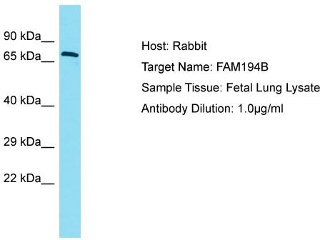 - Host: Rabbit; Target Name: FAM194B; Sample Tissue: Fetal Lung lysates; Antibody Dilution: 1.0 ug/ml