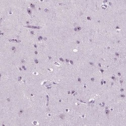 - Immunohistochemistry-Paraffin: ZNF853 Antibody [NBP2-49527] - Staining of human cerebral cortex shows strong nucleolar positivity in neuronal cells.
