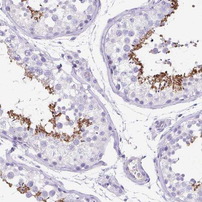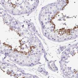 - Immunohistochemical analysis of C11orf42 in human testis using C11orf42 Polyclonal Antibody (Product # PA5-64116) shows high expression.