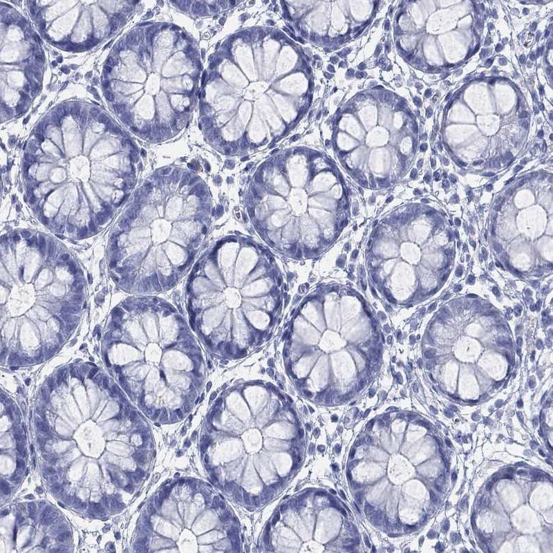 - Immunohistochemical analysis of LRRD1 in human rectum using LRRD1 Polyclonal Antibody (Product # PA5-140355) shows low expression as expected.