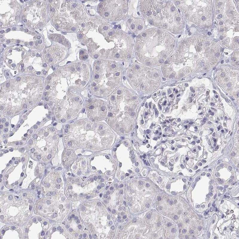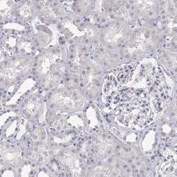 - Immunohistochemical staining of ANKRD65 in human kidney using ANKRD65 Polyclonal Antibody (Product # PA5-64240) shows low expression as expected.