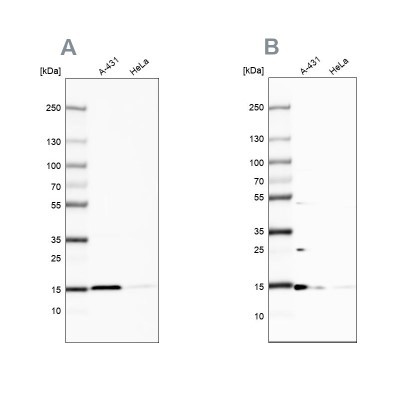- Western Blot: CCDC58 Antibody [NBP2-14452] - Analysis using Anti-CCDC58 antibody NBP2-14452 (A) shows similar pattern to independent antibody NBP2-55464 (B).