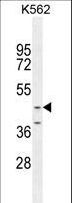- OC90 Antibody western blot of K562 cell line lysates (35 ug/lane). The OC90 antibody detected the OC90 protein (arrow).