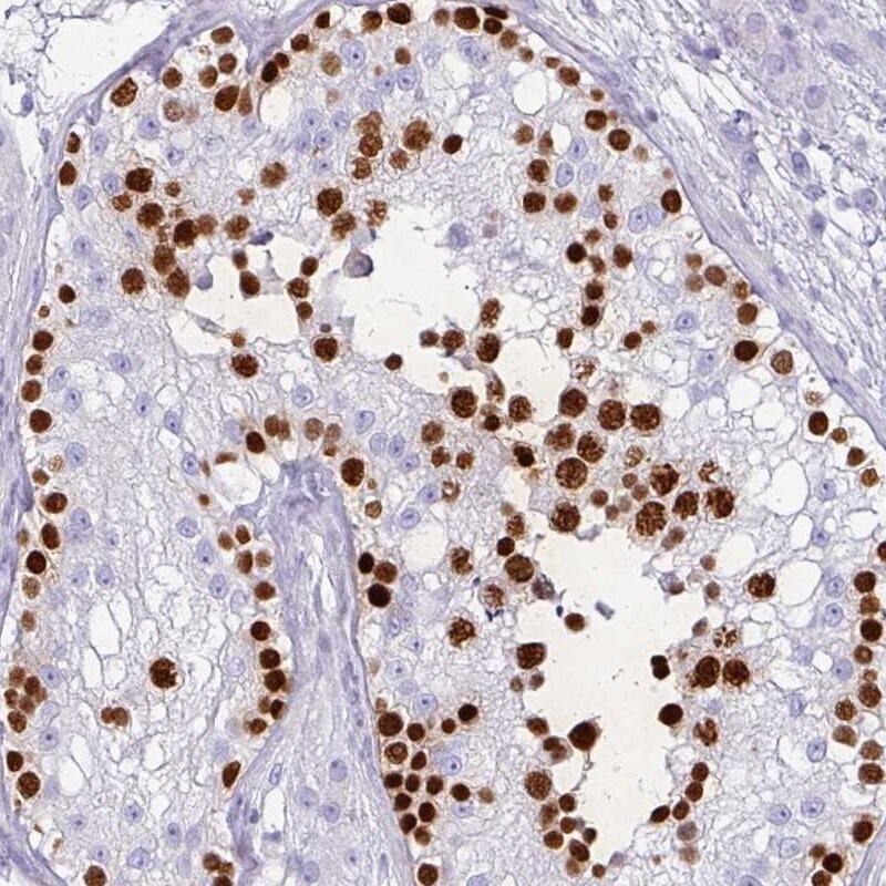 - Immunohistochemical analysis of VCX2 in human testis using VCX2 Polyclonal Antibody (Product # PA5-60787) shows strong nuclear positivity in cells in seminiferous ducts.