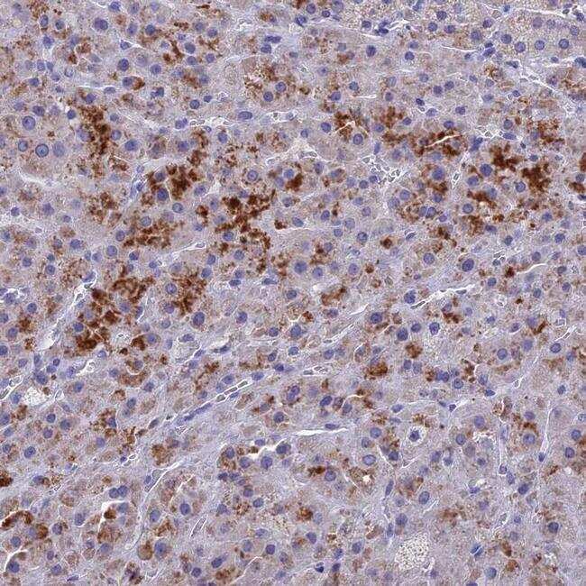 - Immunohistochemical analysis of BTBD19 in human adrenal gland using BTBD19 Polyclonal Antibody (Product # PA5-60060) shows strong granular cytoplasmic positivity in glandular cells.