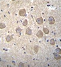 - Immunohistochemistry analysis in formalin fixed and paraffin embedded human brain tissue followed reacted with OR4K2 Antibody (C-term) ?, which was?peroxidase conjugated to the secondary antibody and ?followed by DAB staining.This data demonstrates the use of OR4K2 Antibody (C-term) for immunohistochemistry. Clinical relevance has not been evaluated.