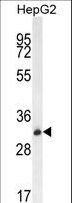 - OR4K5 Antibody western blot of HepG2 cell line lysates (35 ug/lane). The OR4K5 antibody detected the OR4K5 protein (arrow).