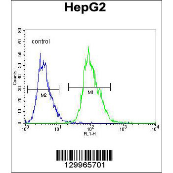 - OR4K5 Antibody (C-term) (Cat. #OAAB08240) flow cytometric analysis of HepG2 cells (right histogram) compared to a negative control cell (left histogram).FITC-conjugated goat-anti-rabbit secondary antibodies were used for the analysis.