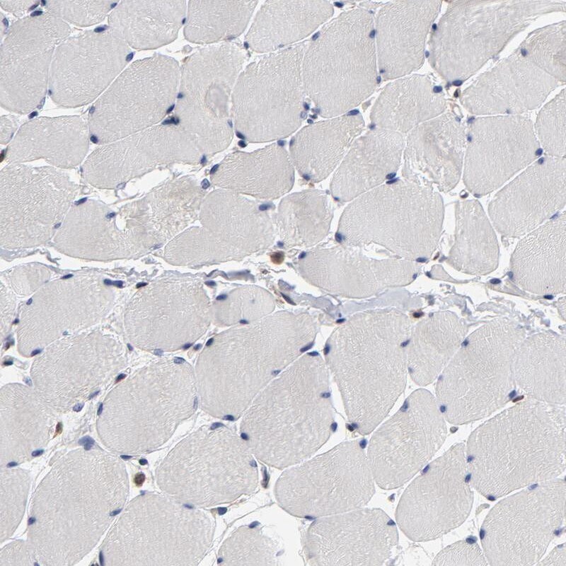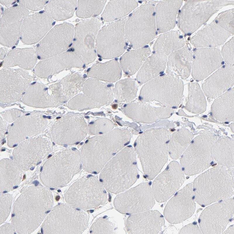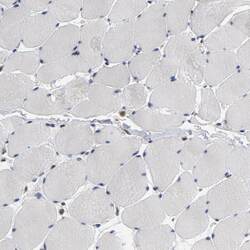 - Immunohistochemical staining of ASMTL in human skeletal muscle using ASMTL Polyclonal Antibody (Product # PA5-51979) shows low expression as expected.