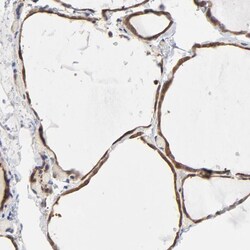 - Immunohistochemical staining of ASMTL in human thyroid gland using ASMTL Polyclonal Antibody (Product # PA5-51979) shows high expression.