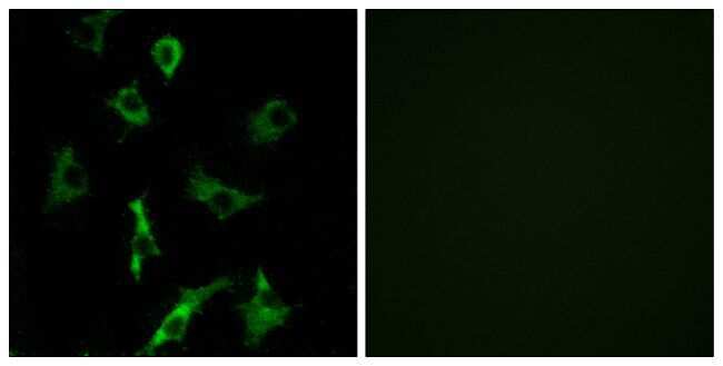 - Immunofluorescent analysis of OR5B3 in COS7 cells using an OR5B3 polyclonal antibody (Product # PA5-39646).