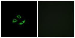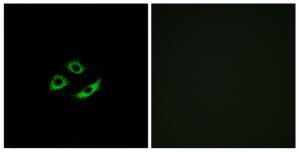 - Immunofluorescence analysis of A549 cells, using OR4C12 antibody.The picture on the right is treated with the synthesized peptide.