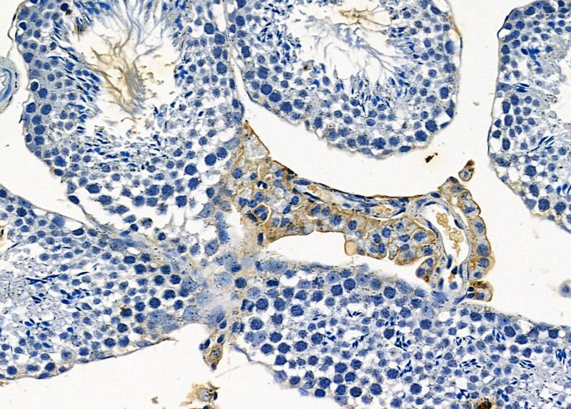 - Immunohistochemistry analysis of OR4C12 in mouse testis tissue. The sample was formaldehyde fixed and a heat mediated antigen retrieval step in citrate buffer was performed. Samples were incubated with OR4C12 polyclonal antibody (Product # PA5-103230) using a dilution of 1:100 (4°C overnight) followed by HRP conjugated anti-Rabbit secondary antibody.