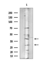 - Western blot analysis of OR4C6 in HeLa cells. Samples were incubated with OR4C6 polyclonal antibody (Product # PA5-102189).