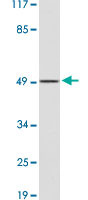 - Western blot analysis of 293 cell lysate with OR5W2 polyclonal antibody (Cat # PAB25080).