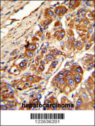 - human hepatocarcinoma with KLC1 Antibody (Center), which was peroxidase-conjugated to the secondary antibody, followed by DAB