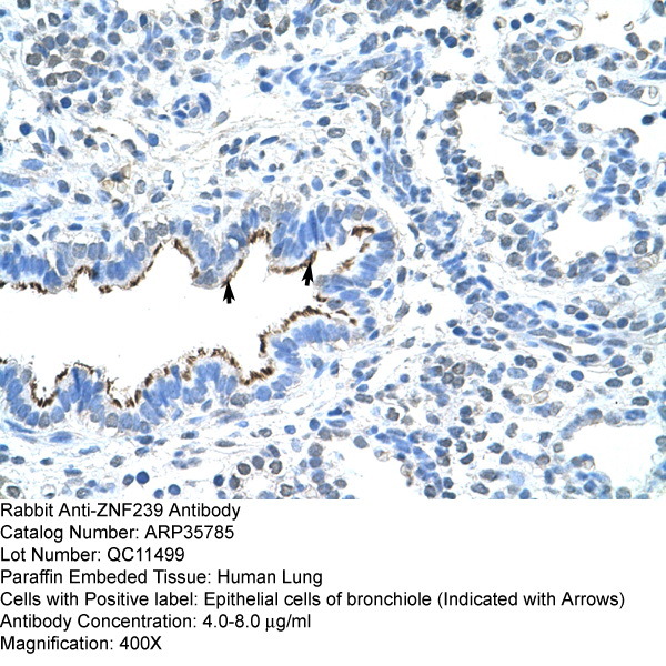 - Immunohistochemistry staining of Human Lung with Anti-ZNF239 antibody