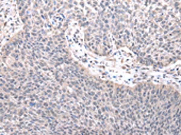 - Immunohistochemical analysis of ZNF239 in paraffin embedded Human lung cancer tissue using ZNF239 Polyclonal Antibody (Product # PA5-51176) at a 1:25 dilution.
