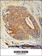 - GAGE7 Antibody (C-term) immunohistochemistry analysis in formalin fixed and paraffin embedded human prostate carcinoma followed by peroxidase conjugation of the secondary antibody and DAB staining. This data demonstrates the use of the GAGE7 Antibody (C-term) for immunohistochemistry. Clinical relevance has not been evaluated.