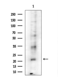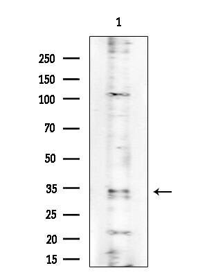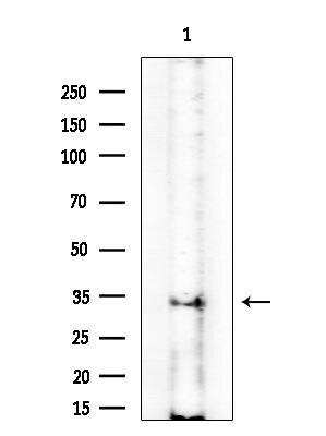 - Western blot analysis of PRSS33 extracts from COLO205 cells (heat-shock treatment). Samples were incubated with PRSS33 polyclonal antibody (Product # PA5-104380) using a dilution of 1:1,000. Observed bands: 34 kDa.