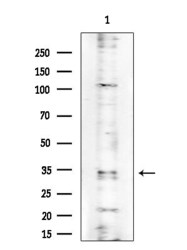 - Western blot analysis of PRSS33 extracts from EC304 cells (heat-shock treatment). Samples were incubated with PRSS33 polyclonal antibody (Product # PA5-104380) using a dilution of 1:1,000. Observed bands: 34 kDa.